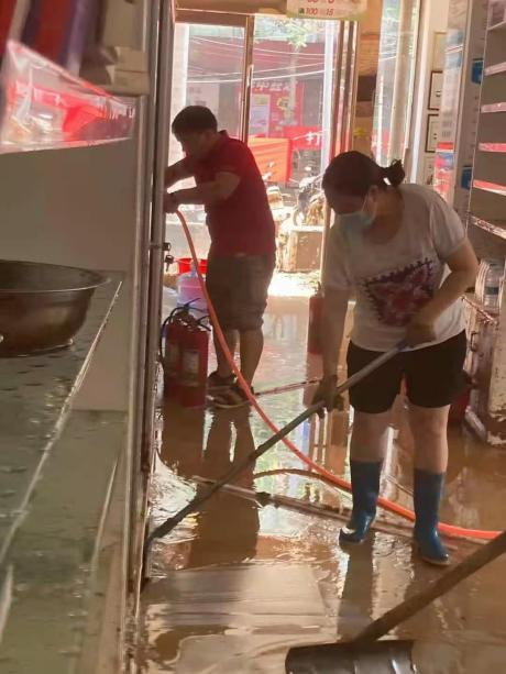 帮助客户脱险复业,哪里需要,平博pinnacle就卷起袖子一起干。洛阳焦作地区,地区经理带领业务员帮助泡水药店打扫淤泥,恢复经营。